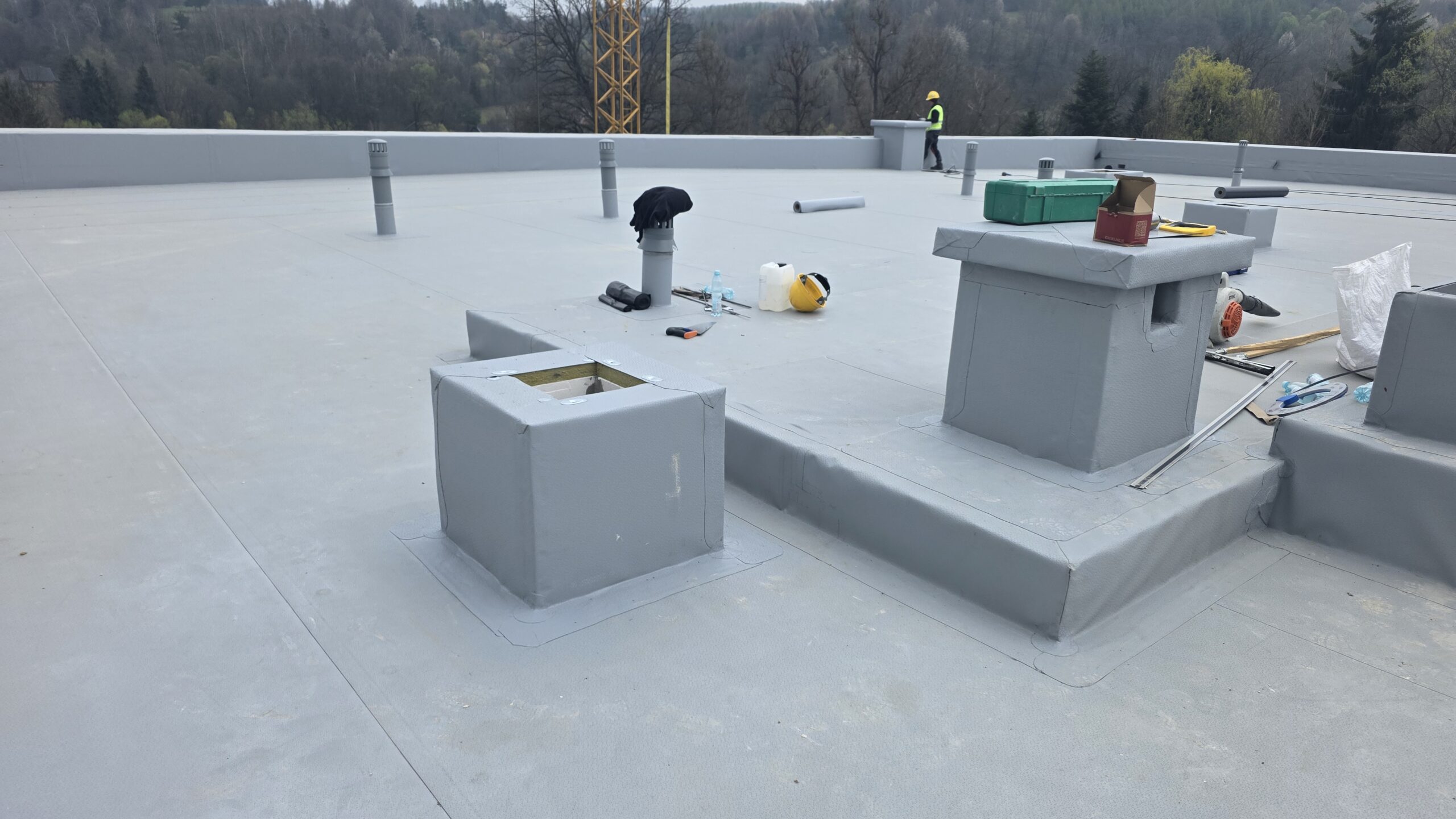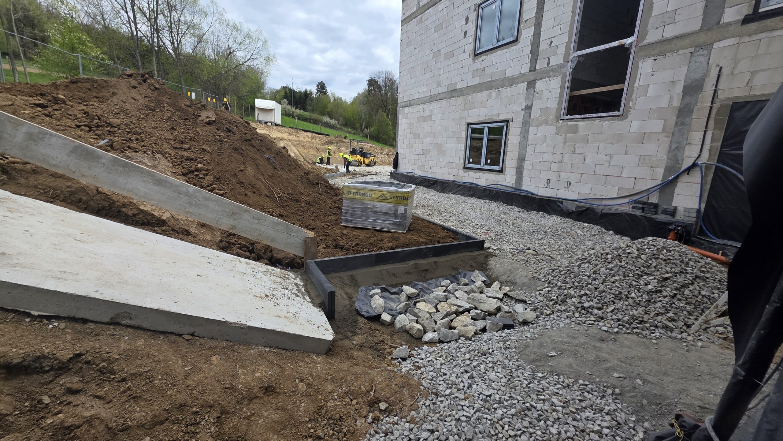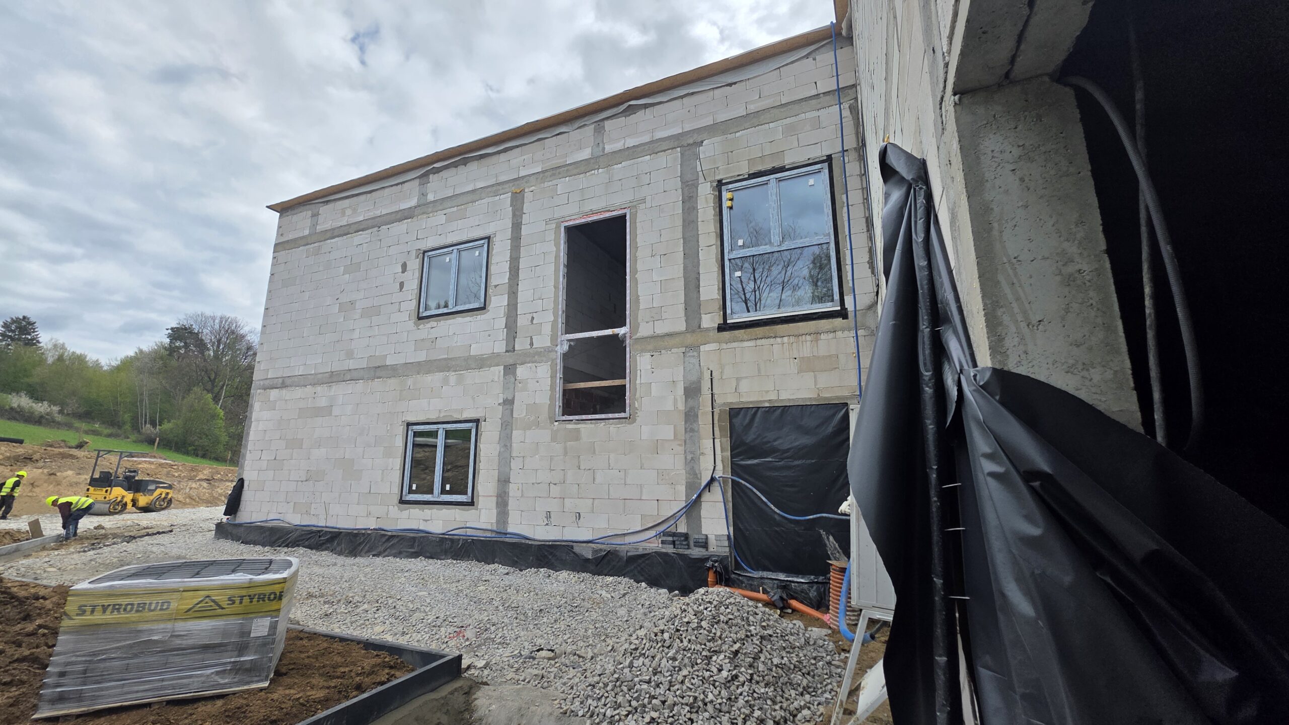 Wykonano poszycie dachu na budynku, kontynuowane są prace przy obróbkach, trwają również prace ziemne przy zagospodarowanie terenu zewnętrznego. Wewnątrz budynku realizowane są roboty związane z wykonaniem instalacji sanitarnych , elektrycznych oraz roboty tynkarskie i okładzinowe ścian. Rozpoczęto montaż stolarki okiennej.