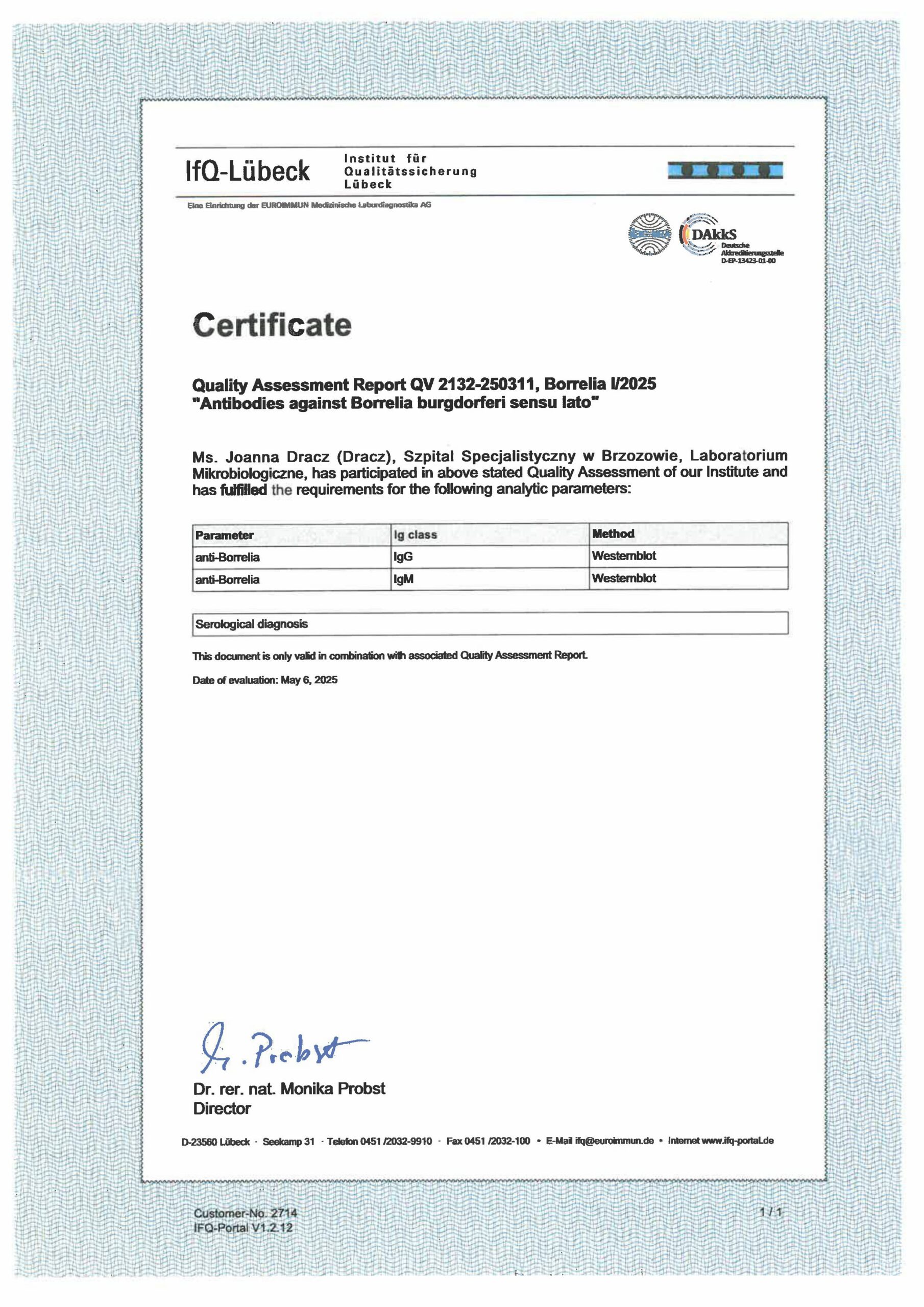 W Pracowni Serologii Infekcyjnej badania wykonywane są przy użyciu metody immunochemiluminescencyjnej oraz immunoblotingu.