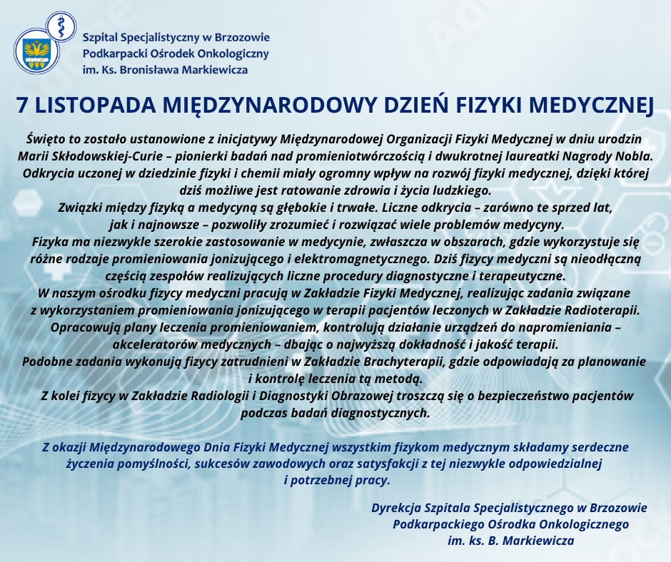 Międzynarodowy Dzień Fizyki Medycznej – 7 listopada