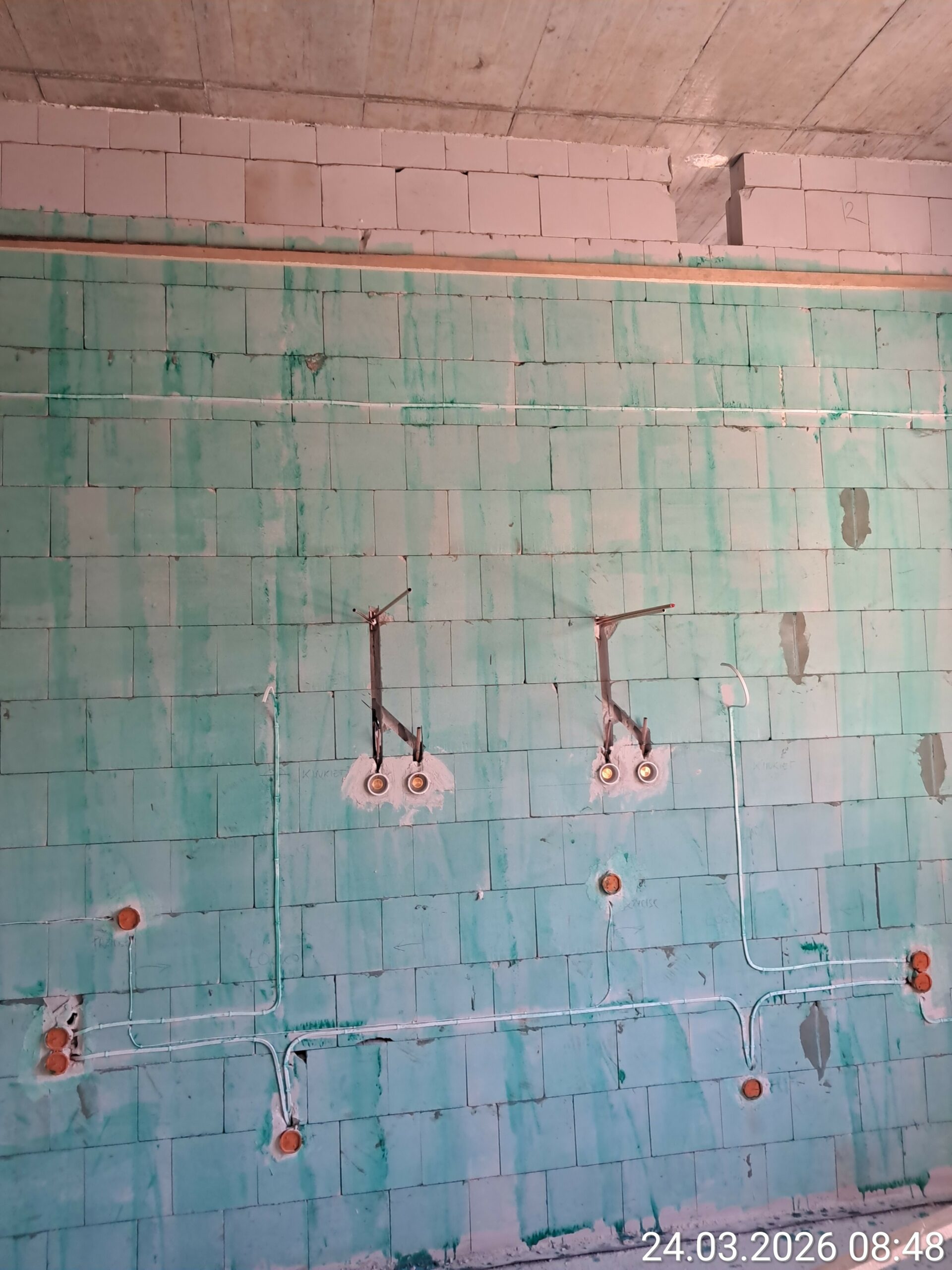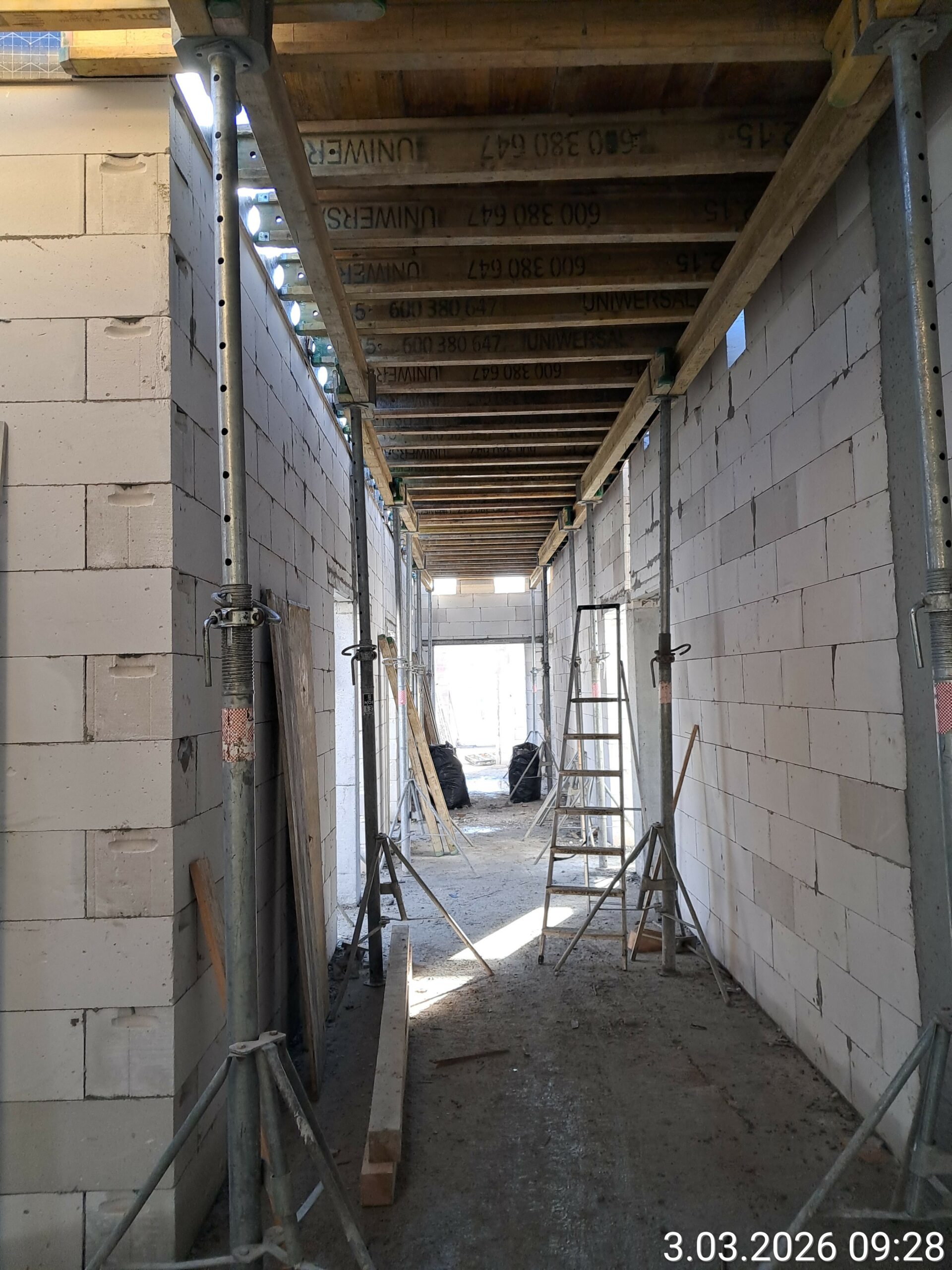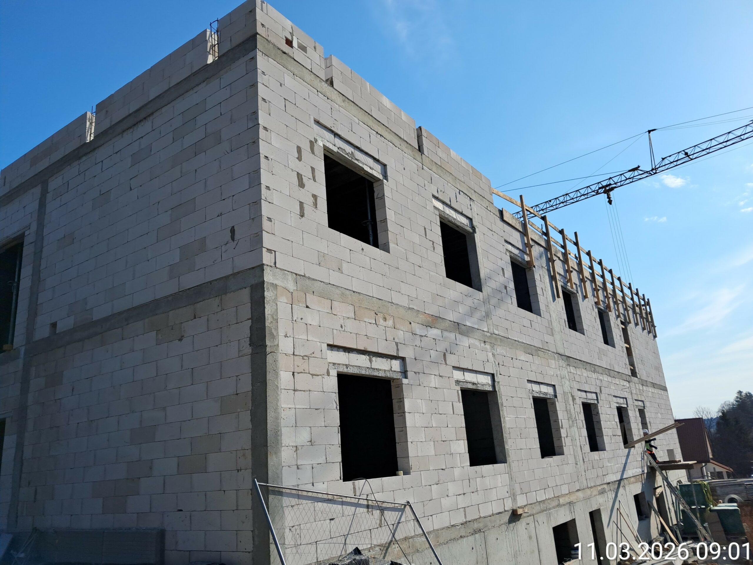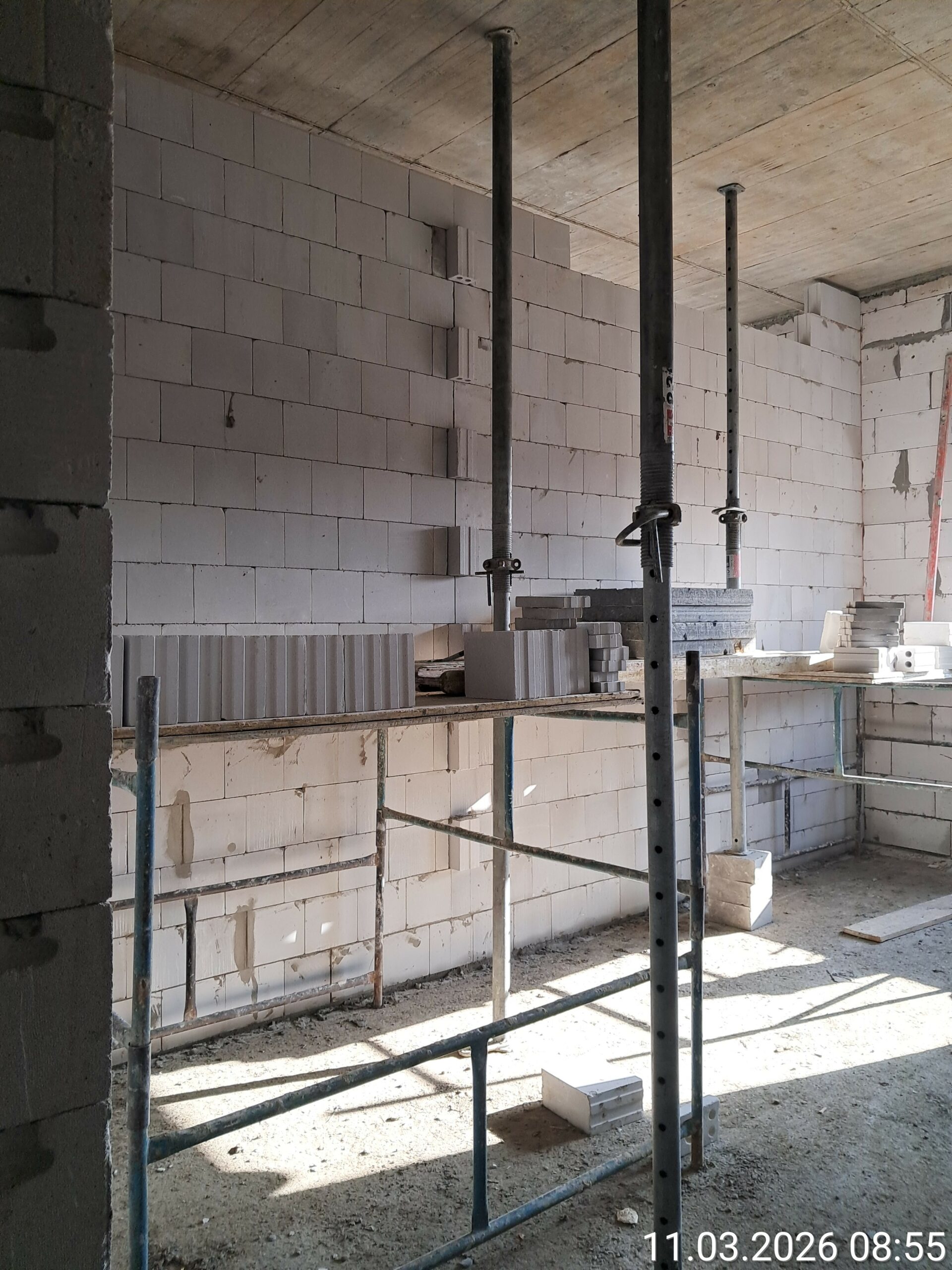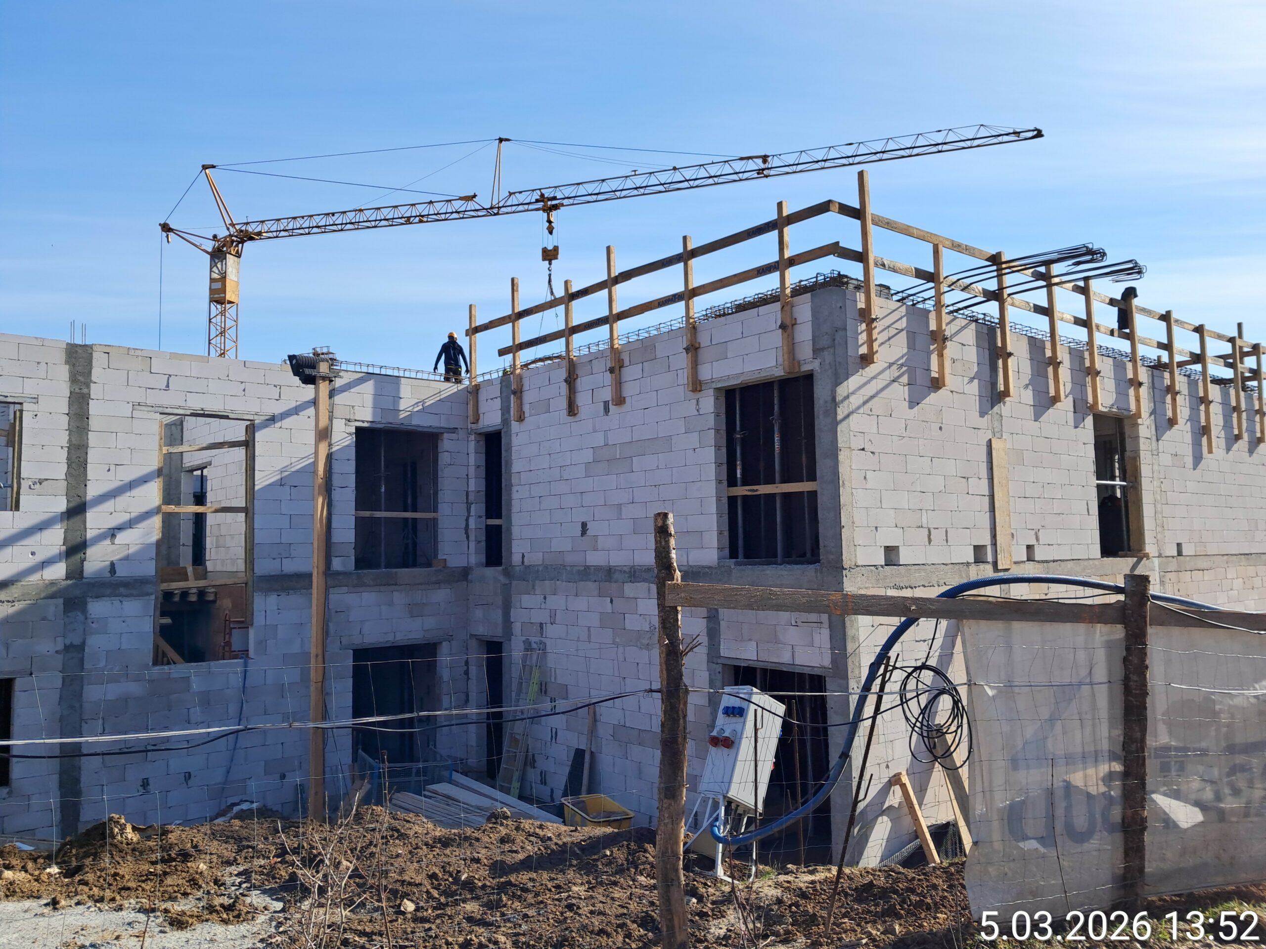 Wykonano ściany pietra oraz strop nad piętrem . Kontynuowane są prace budowlane związane z wykonaniem ścian wewnętrznych . Rozpoczęto roboty przy wykonywaniu instalacji sanitarnych i elektrycznych.